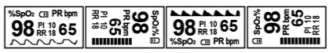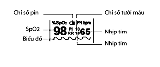 Hiện thị dữ liệu SP02 và RR. Hiện thị PI, PR và biểu đồ