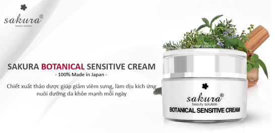 Giờ bạn không còn phải lo nữa, Kem dưỡng cho da nhạy cảm Sakura Botanical Sensitive Cream giúp bạn xua tan những nổi lo về mụn, tấy đỏ, viêm sưng. Sakura Botanical Sensitive Cream được sản xuất theo công nghệ tiên tiến độc quyền Nhật Bản, sản phẩm được chiết xuất hoàn toàn từ các loại thảo dược trong thiên nhiên, lành tính, đảm bảo an toàn nuôi dưỡng và làm dịu làn da mẫn cảm, giúp da phục hồi, khỏe mạnh, rạng rỡ lên từng ngày.