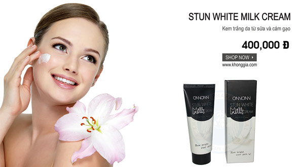 - Lấy cảm hứng từ bí quyết trắng da bằng sữa của nữ hoàng sắc đẹp Cleopatra, Stun white milk cream mang đến công thức dưỡng trắng hiện đại từ thiên nhiên với chiết xuất từ những dưỡng chất có trong sữa, cám gạo và cây Oxalis đều có tác dụng dưỡng trắng da hiệu quả.