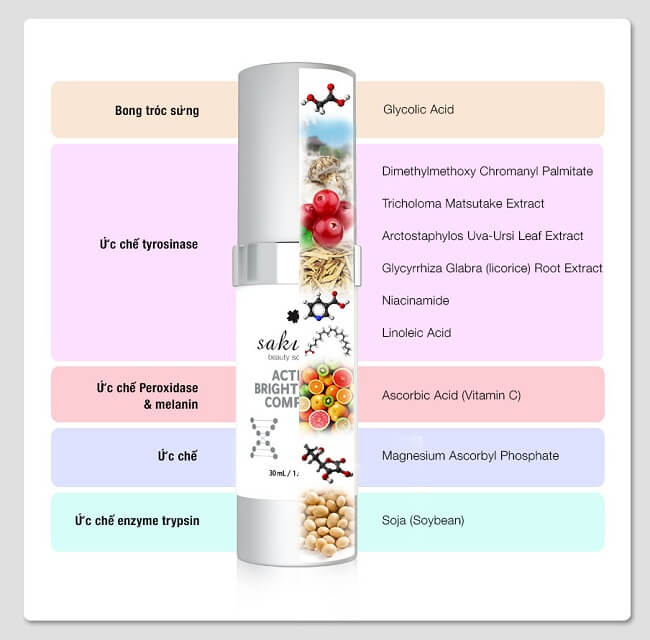 Ứng dụng đỉnh cao của công nghệ phức hợp đột phá, sản phẩm SAKURA ACTIVE BRIGHETENING COMPLEX sử dụng enzyme peptide độc quyền, giúp điều chỉnh quá trình hình thành sắc tố da bằng cách ức chế mạnh mẽ hoạt động men tyrosinase, ngăn ngừa tăng sinh melanin, đồng thời, cùng với các hoạt chất làm trắng da điển hình (AHAs, Ascorbic Acid) giúp tái tạo, làm sáng và săn chắc da mặt, hỗ trợ chống lão hóa da do tiếp xúc với ánh nắng mặt trời tích lũy trong thời gian dài, phục hồi nhanh chóng làn da tổn thương do quá trình lão hóa tự nhiên và dưới tác động của môi trường, mang đến hiệu quả ưu việt, giúp cải thiện tình trạng tăng sắc tố, sạm nám da chỉ sau 4-6 tuần điều trị (*)