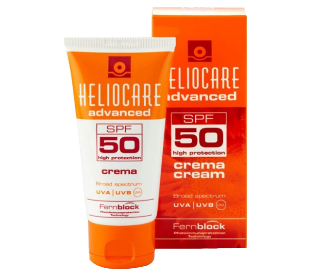 Kem chống nắng Heliocare Advanced Cream SPF 50 được chiết xuất từ thực vật, có khả năng chống tia cực tím và chống oxy hóa cao, làm nhẹ dịu làn da, luôn cho bạn cảm giác nhẹ nhàng, khô thoáng, dễ chịu. Với thành phần chống nắng vật lý kết hợp hóa học trong công thức chống nắng fernblock của Heliocare giúp kem chống năng Heliocare Advanced Cream SPF 50 tăng chỉ số chống nắng, tạo hiệu quả cao trong việc hình thành màng chắn phân tán tia UVA, UVB, chặn sự tiếp xúc của tia cực tím với màng da giúp loại bỏ gốc tự do gây hại, ổn định collagen, không gây sạm nám, tàn nhang trên bề mặt da. Sản phẩm dễ thẩm thấu vào da nhưng không gây bít lỗ chân lông, do đó không tạo điều kiện cho mụn phát triển. Bạn có thể hoàn toàn yên tâm khi sử dụng sản phẩm để bảo vệ làn da của mình.