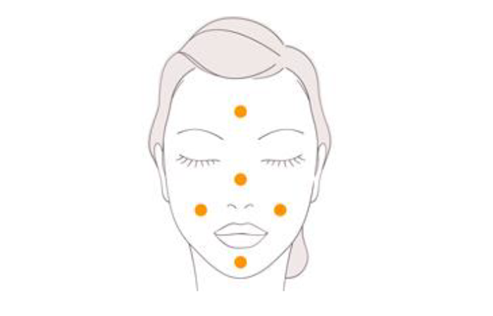Làm sạch và lau khô da mặt nhẹ nhàng và sau khi thoa serum, lấy 1 lượng vừa đủ, chấm đều lên 5 điểm trên khuôn mặt (trán, mũi, cằm, 2 bên má). Bắt đầu từ các điểm của kem, thoa nhẹ và massage ra phía ngoài khuôn mặt.