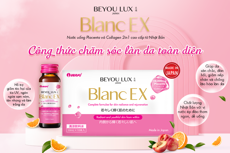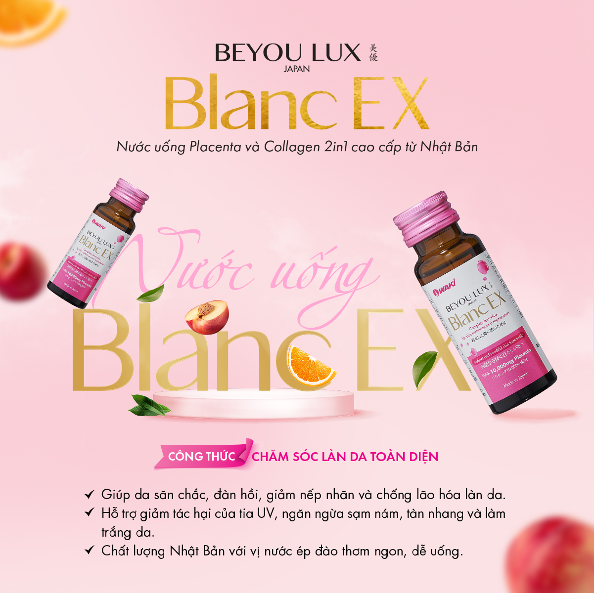 Beyou Lux Blanc EX - Nước uống Placenta & Collagen 2in1 cao cấp từ Nhật Bản với công thức chăm sóc làn da toàn diện
