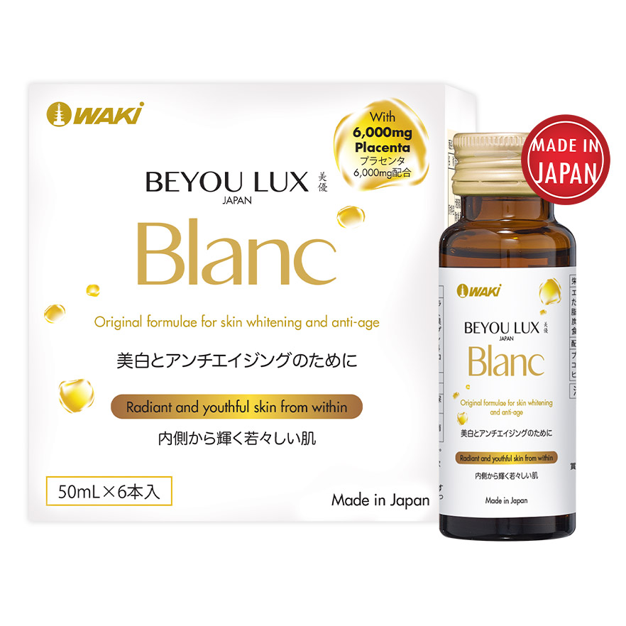 Beyou Lux Blanc được sản xuất tại Nhật Bản từ các thành phần chuyên làm đẹp như Tinh chất nhau thai heo (Placenta), Collagen từ cá, Hyaluronic Acid và Vitamin C.,... đem đên cho bạn làn da tắng sáng rạng ngời, căng mịn, giúp làn da khỏe đẹp từ bên trong.