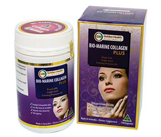Golden Health Bio-Marine Collagen Plus được nhập khẩu nguyên hộp từ Úc, sản xuất theo công nghệ tiên tiến của Úc, sản phẩm được chiết xuất từ nguồn nguyên liệu tự nhiên, chứa đủ hàm lượng collagen cần thiết cho cơ thể kết hợp với các dưỡng chất khác như tinh dầu hạt nho, tinh dầu hoa anh thảo, sữa ong chúa,… giúp giảm nếp nhăn, đem lại cho bạn làn da căng mịn, trắng sáng, làm chậm quá trình lão hóa, cải thiện độ dàn hồi cho da, giúp nâng cao đặc tính nâng đỡ da của các sợi collagen. Bên cạnh đó, sản phẩm còn là phương pháp hỗ trợ dinh dưỡng tối ưu cho phụ nữ giai đoạn tiền mãn kinh, mãn kinh, giúp làm giảm những triệu chứng khó chịu thường gặp trong giai đoạn này.