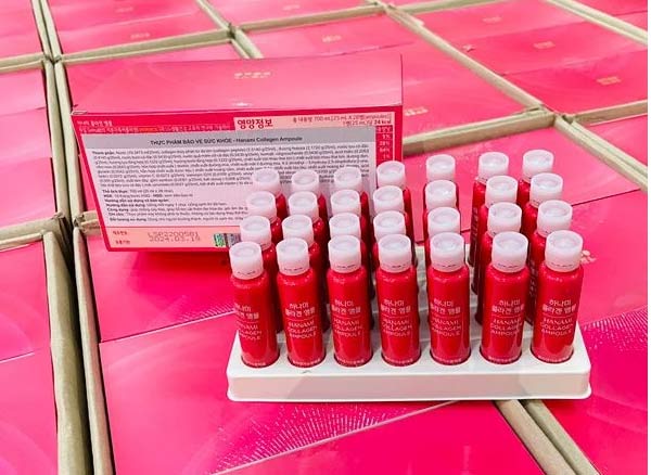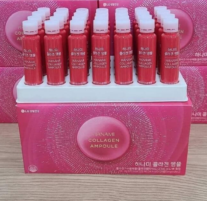 Hanami Collagen Ampoule – thực phẩm đẹp da, bồi bổ sức khỏe số 1 của tập đoàn LG O Hui, chiết xuất từ collagen và các thành phần thực vật thiên nhiên giàu vitamin và khoáng chất: quả mâm xôi, bưởi, lựu, hỗn hợp chiết xuất dược liệu (chiết xuất hoàng cầm, chiết xuất cam thảo, chiết xuất táo tàu,…)… có tác dụng thanh lọc da và cơ thể, chống nhăn, chống lão hóa, giảm nếp nhăn, cải thiện vùng da tối màu (nám sạm, tàn nhang, đồi mồi), bổ sung ẩm và dưỡng chất giúp da sáng và căng mịn, làm dịu và phục hồi vết thương, giảm tiết dầu nhờn, kháng viêm, ngăn ngừa mụn, kích thích tóc mọc nhanh, bổ mắt, dưỡng trắng và chắc khỏe răng lợi, điều hòa nội tiết, điều hòa sinh lý, bổ sinh collagen giúp săn chắc vòng 1,…
