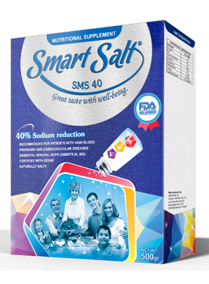 - Hạt muối thông minh Smart Salt SMS 40 giúp làm giảm lượng Natri - thành phần gây hại cho sức khoẻ trong thực phẩm, nhưng vẫn đảm bảo vị mặn tự nhiên như muối truyền thống.