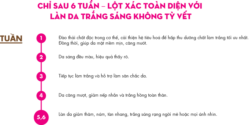Với 98% các khách hàng công nhận làn da trắng sáng & đẹp hơn có thể nhìn thấy trong 6 tuần sử dụng liên tục.