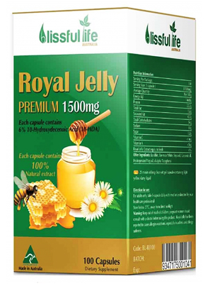 Sữa ong chúa Blissful Life Royal Jelly Premium 1500mg là sản phẩm đặc biệt có thành phần chính là sữa ong chúa nguyên chất kết hợp với các loại vitamin và các tá dược giúp cơ thể dễ dàng hấp thu, tăng hiệu quả làm đẹp da và bồi bổ cơ thể. Viên uống Sữa ong chúa Blissful Life Royal Jelly Premium 1500mg là sản phẩm nhập khẩu 100% từ Úc có hàm lượng lên đến 1500mg, sản phẩm cung cấp tối đa các dưỡng chất thiết yếu có được từ sữa ong chúa tự nhiên, giúp phát huy hiệu quả các công dụng to lớn tích tụ trong sữa ong chúa, giúp người dùng nhanh chóng thấy được sự hiệu quả khi sử dụng sản phẩm này.