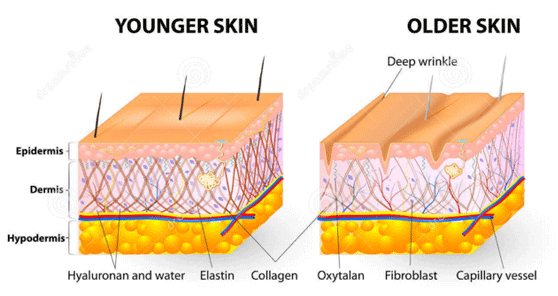 Với làn da, ngoài nhiệm vụ liên kết nó còn có nhiệm vụ tạo sự đàn hồi. Da mặt chúng ta có thể giãn ra khi cười, nói chuyện hay nheo mắt, và co lại như cũ khi ngừng các hoạt động này là do sự chuyển động của cơ và độ đàn hồi của da. Da mặt có thể căng mịn khi còn trẻ và chùng nhão nhiều nếp nhăn khi về già là do sự thay đổi về tính chất của collagen vì thế nó chính là nhân tố quan trọng nhất giúp chúng ta duy trì sự trẻ trung của mình.