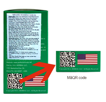 3) Toàn bộ vỏ hộp giấy Perfect Slim USA đều có in mã QR Code như hình dưới. Khi dùng chương trình Scan trên điện thoại thông minh như Iphone, Samsung Galaxy, Sony Xperia ... sẽ tự động hiện lên trang web của hãng www.haherbal.com
